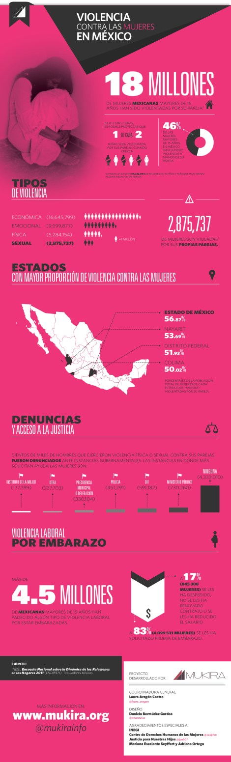 Mukira se dio a la tarea de recabar las estadísticas más recientes y relevantes respecto a la violencia contra las mujeres en México. Los hallazgos se presentan en la infografía a continuación.